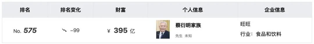 《2024胡润全球富豪榜》上,蔡氏家族以395亿元身家,列575位。